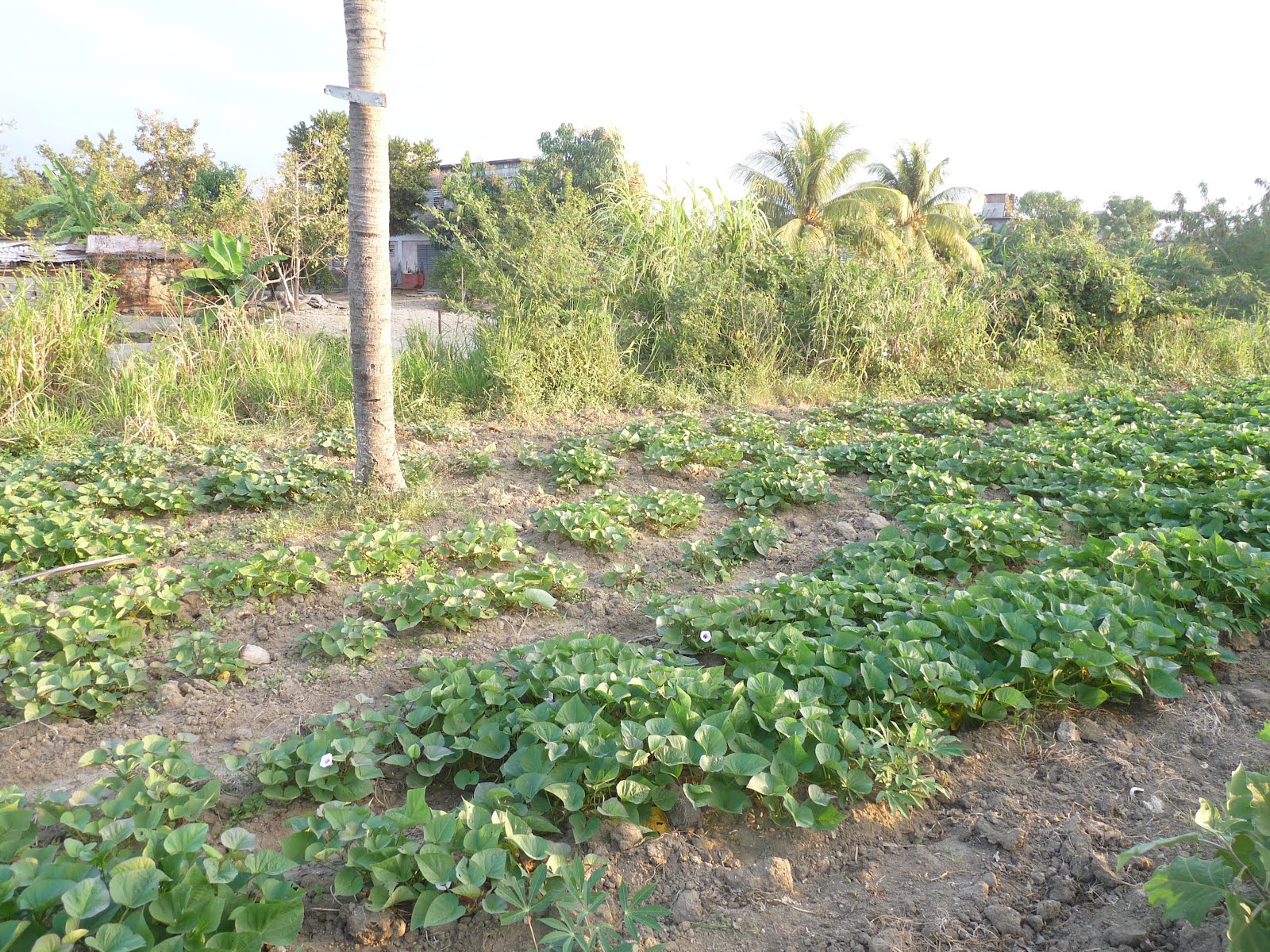 A fallow field, and more sweet potatoes. It was still quite early in the morning, as you can see by the shadows, but getting warm quickly. This farm had originally been run by Chinese people, but had been abandoned during or after the revolution. (I was not quite able to put together what happened to the Chinese in Cuba. There were once very many, now there are very few. They left, is the official story. It may even be true, who knows?)