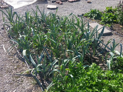Finally, our selected line of extra-hardy leeks is doing well, apart from the leek moth which now appear to be a fixture. They still look quite variable but we have a good selection of medium to large sized leeks in the bed, so it looks like we are making progress in selecting them to size up a bit earlier. Unfortunately, I left about 8 to 10 leeks from last year to go to seed, and although I haven't cleaned it yet, it looks like there will be next to no seed. Not only is that pushing it on the number of leeks to let go to seed, they did very badly at blooming at overlapping times. However, there's lots of seed left from the year before, and this years, as said, are looking good. Onward to next year...
