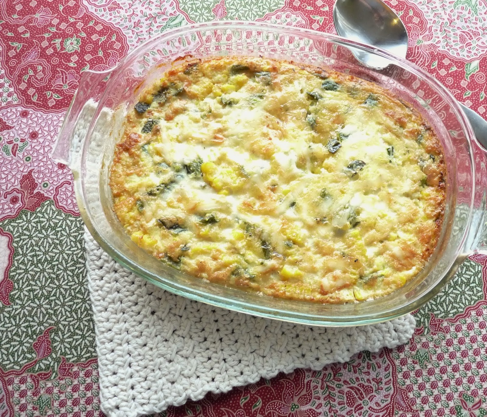 When the vegetables in the skillet have cooked for 5 minutes, add the zucchini and mix in well; let it cook for several minutes, stirring occasionally, then mix in the corn. Continue cooking and stirring regularly for another 5 minutes or so.