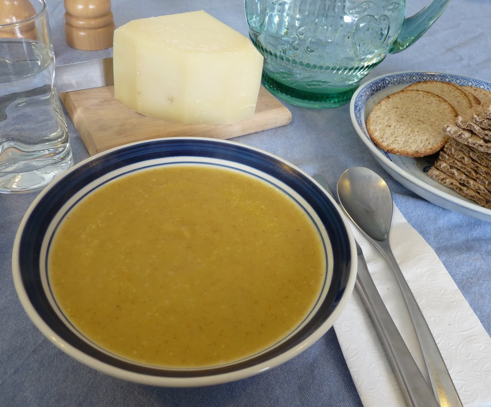 It's a lovely, mild but full-flavoured soup. I served mine without any topping and did not really miss it. Croutons and bacon bits were another recommended topping which would add a nice bit of crunch to the very smooth soup. (And the soup should be very smooth - as smooth as you can get it. Don't be afraid to cook the vegetables quite soft, and a blender is probably better than a food processor if you have one.)