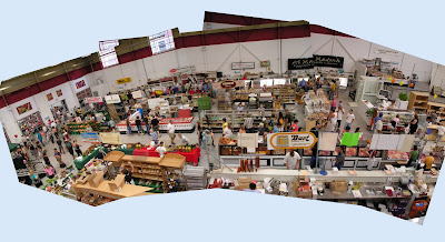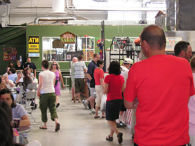 Inside, the upper level has the food court, and a few full-time vendors. But most of the action is downstairs in the main hall. Here is a cobbled-together overview of the shopping madness. Click the picture for a larger view.