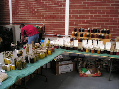 As soon as we get downstairs we usually head out the side door to a covered outside area, which is where almost all the fruits and veggies are during the summer. The first stand on the right as soon as we get out is a favourite stop. They have home-made preserves as well as a large selection of high quality locally grown produce at very reasonable prices. We got some fabulous cherries from them this trip, but we timed it perfectly - this is a one-shot deal; they don't have a lot and they harvest them all at once.