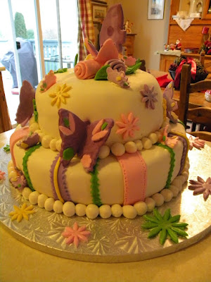 fiore e farfalle mentre nevica fuori e tutti dormono e io tutta bianca di zucchero e mani appicicosi faccio quest meravigliosa torta per la cuginetta di 4 anni un bambina dolcissima e delicata la mamma della bambina mi ha chiamato dopo la festa dicendomi sia mo rimasti tutti a bocca aperta non credevamo hai nostri occhi non la volevamo tagliare e mi ha detto il tuo nome e master cakes che bella