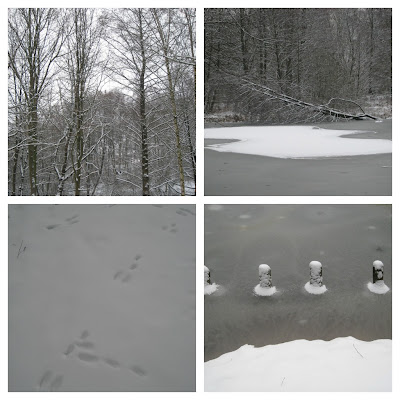Nice pictures of snow! At the moment it snows again, although rain is predicted. The picture of the little river looks like a person....Did you see that?