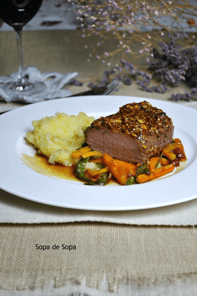 Mezclar la mermelada y la mostaza y añadirla a la salsa. Rectificar de sal y pimienta y verter la salsa de nuevo sobre la carne. Si vemos que queda muy liquida ayudarse con un poco de Maicena disuelta en un poco de agua y dar un hervor para que espese más.