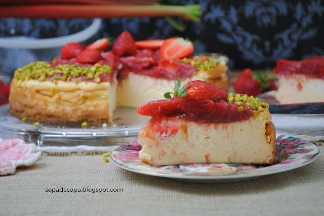 queso cubierto con fresas y ruibarbo