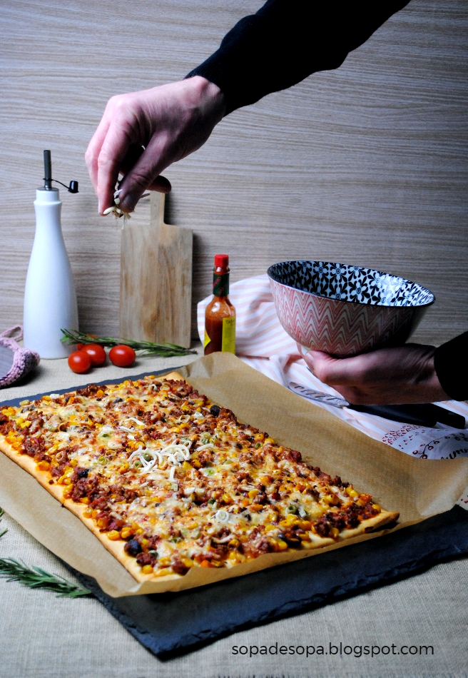 Entonces añadir el maíz y los frijoles. Saltear un poco y rectificar de sal y pimienta. Si te gusta picante puedes añadir Tabasco al gusto y ponerla al punto con el azúcar en caso necesario.