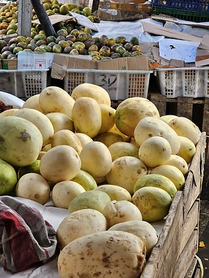 Timun Suri is most commonly consumed raw for its fresh, sweet flavor. The flesh can be sliced and consumed by itself, or it can be tossed into green and fruit salads. It can also be used to make fruit leather or compote. The most popular use of Timun Suri is in a refreshing beverage, sometimes known as fruit ice. This beverage uses Timun Suri paired with syrups, honey, condensed milk, or lime juice for added flavor. It can also be combined with other melons or coconut for additional fruity notes. Timun Suri will keep 3-5 days when stored in a cool, dark place and when sliced, the pieces should be stored in the refrigerator.