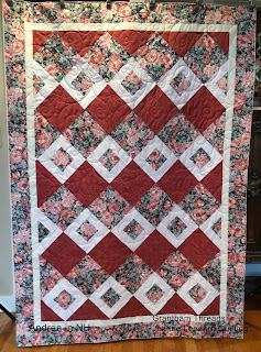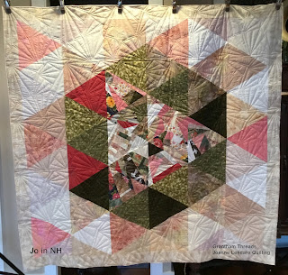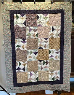 Up next is a couple of quilts from Andrea here in NH. Both of these are excellent patterns to show off a beautiful fabric that you just can't cut. Love the larger solid blocks blended with the few pieced blocks. Keeping the quilting light will make these more huggable than ever!