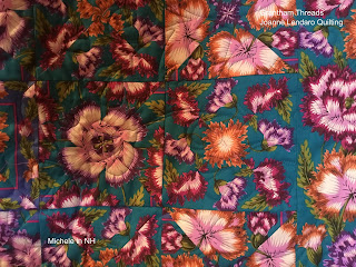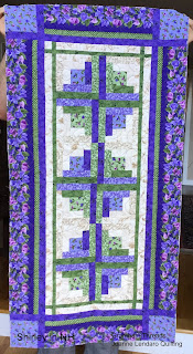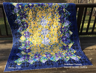 Here's a couple of projects from Shirley in NH. First up is a table runner in purples and greens, it was a great finish! Her second project is a beautiful quilt in blues and yellows. She wanted a modern feather design and this one from My Creative Stitches was just perfect!
