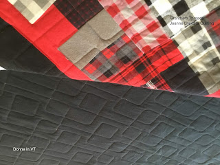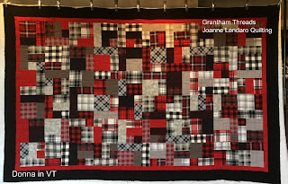 Donna finished off this magnificent quilt for her son for Christmas! Fabrics are soft flannels and the most perfect colors for a man's quilt. We selected a modern square-ish quilting design and it was just the right touch to finish this one off just right!