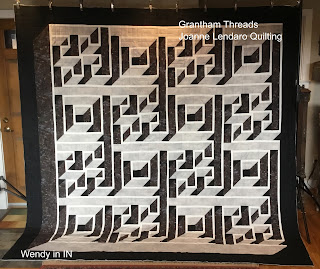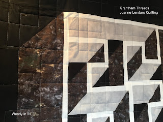 Another quilt that was under the tree this year was this superb quilt from Wendy in IN. Made for her son this super huge quilt I'm sure will be treasured for many years to come. Another perfect quilt for a young man! We decided upon a geometric quilting design finishing it off beautifully.
