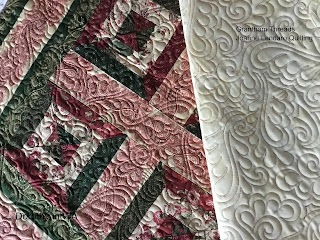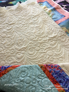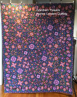 Barbara and Sandy finished off a Kaffe Fassett quilt last year and needed a bed runner to go with those quilts. Here's their runners and Barbara also had me quilt up shams to match. Couldn't see much of the quilting on the runners, but the sham shows the beautiful modern quilting design that goes amazingly with the Fassett fabrics.