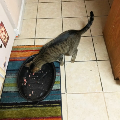 Our kitty, Moe, helped with the clean-up of the roasting pan.