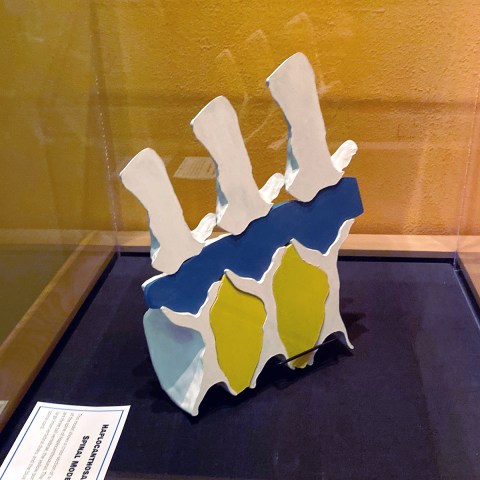 A restored, retrodeformed caudal of the Snowmass Haplocanthosaurus, 3D-printed at life size for the exhibit. Photo swiped from the WSC Facebook page.