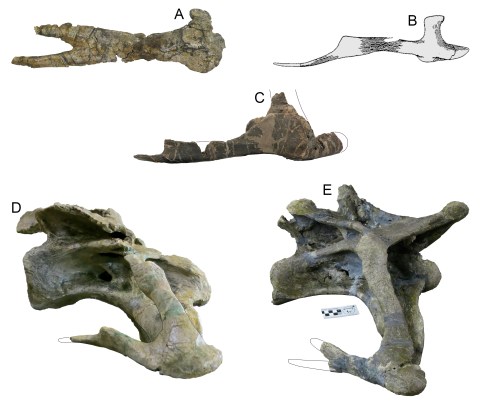 But Bellardini and Cerda (2017) showed that the so-called “osteoderms” are probably no such thing, but represent other, more normal, bony elements. Bonaparte’s types 1, 3 and 4 were all reinterpreted as complete or partial dorsal ribs, and type 2 as a portion of the iliac blade: