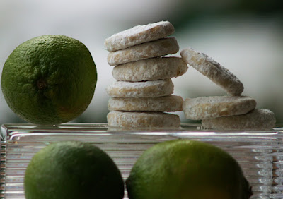 Dok sam tražila ideje za blagdanske kekse, pronašla sam ideju za ove obične ali vrlo popularne kekse s limetom kod Marthe Stewart koja inaće ima cijelu zbirku odličnih recepata za deserte s limetom. Ovi kesići su pomalo nalik našim vanili kiflicama, ako zamislite da umjesto vanilije imaju okus limete. Keksi su napravljeni na vrlo precizan način. Sami po sebi jedva da su uopće slatki tako da postaju "pravi" tek nakon što se uvaljaju u šećer u prahu, tako da unatoč tome što su velikodušno posuti šećerom, nisu preslatki. Tope se u ustima, a premda su vrlo jednostavni jako su dekorativni na blagdanskom stolu i sigurno će biti hit među ostalim keksićima. Za njih vrijedi poslovica “Manje je više”. Pošto sam vas u prethodnom