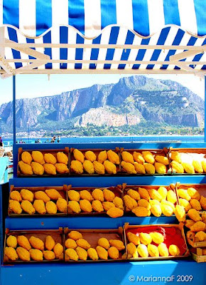 Above: luminously yellow cedro on the beautiful beach of Mondello.