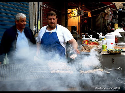 Above: typical varities of street food, such as "pane ca meusa" which apparently is not just Siclian, but genuinly Palermitan.