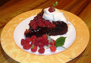 A megsült sütemény tetejére: olvasztott csokoládé és egy maréknyi felezett dióbél.