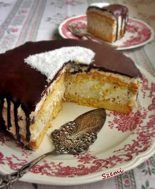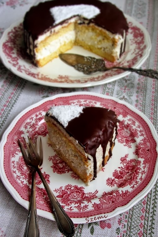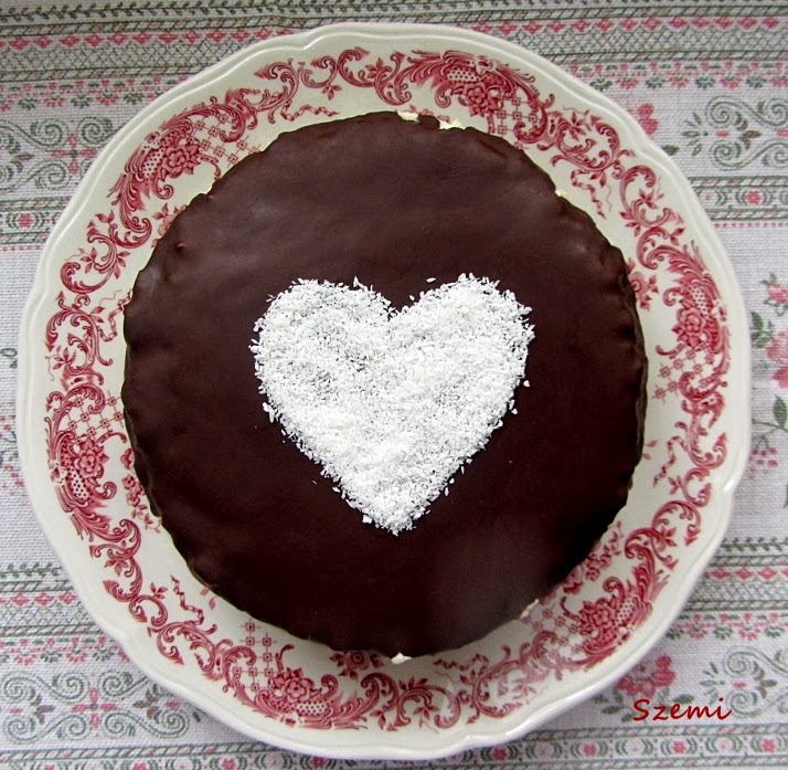 A tetejét szív alakban kókuszreszelékkel díszítettem, ha már egyszer Valentin napra készült.. :)