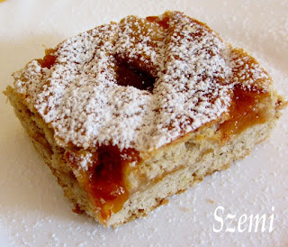 A tésztát elosztottam 2/3 - 1/3 részre. Egy tepsit kibéleltem sütőpapírral, majd beleraktam a téglalap alakúra kinyújtott 2/3 részt, és megkentem baracklekvárral -nekem 4 dcl lehetett kb. az üvegben, de mehetett volna rá még több is.