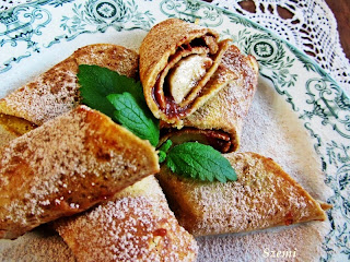 A kimaradt palacsintákat megtölthetjük közben édes töltelékkel, nekem most hagyományos, üstben főzött, cukormentes szilvalekvár került bele.
