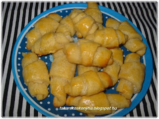 Elkészítése: tészta elkészítése a fenti linket található módon, a töltelék olvasztott margarin+ cukor+ kakaópor összekeverni bele a reszelt csokoládé és ezzel kenni a tésztát majd cikkekre vágni és tekerni. Sütőpapírra pakolni lekenni tojással és előmelegített sütőben 180 C fokon 25' sütni.