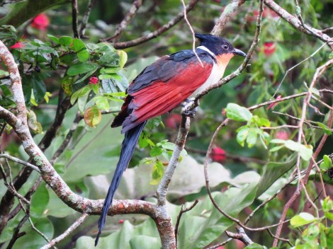 As if on cue and beyond any realistic hopes we had, the Chestnut-winged Cuckoo from our first visit re-appeared. As bold and unconcerned as it was when we came across it nearly two weeks ago, we were happy to indulge our lenses one more time with this compelling subject.