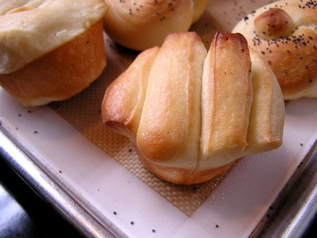 Rolls made from Peter Reinhart's sandwich bread recipe (from Artisan Breads Every Day) (SP) shaped as knots and fans