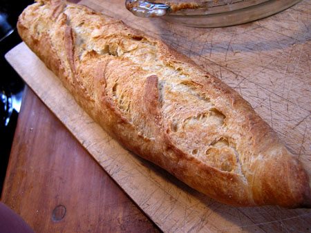 KAF poolish baguette (NH) steamed using the magic bowl, v.2 (i.e., giant disposable roasting pan)! No crumb shot, sorry.