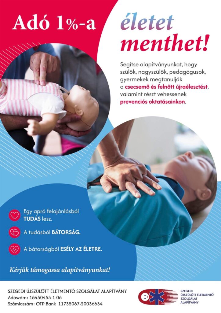 ❤️ Ne hagyja elveszni adója 1%-át! Támogassa vele a Szegedi Újszülött Életmentő Szolgálat Alapítványt május 20-ig, hogy sikeresen segíthessük a koraszülés megelőzését és a vészhelyzeti újraélesztés tanítását!