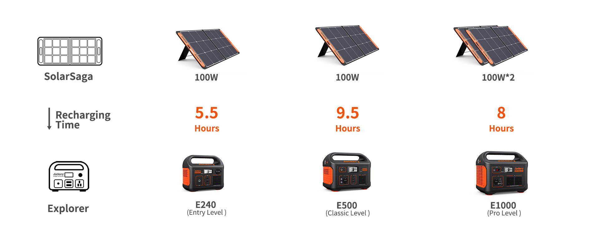 - Compatible & Versatile: This solar panel is compatible with Jackery Explorer 240 v2/500/1000 v2/2000 v2/1000 Plus/2000 Plus power station (sold separately), ideal for off-grid camping and unexpected power outage. Solar Saga 100 features 1* USB-C(5V,3A) output port and 1* USB-A(5V, 2.4A) output port to charge 2 small devices directly.