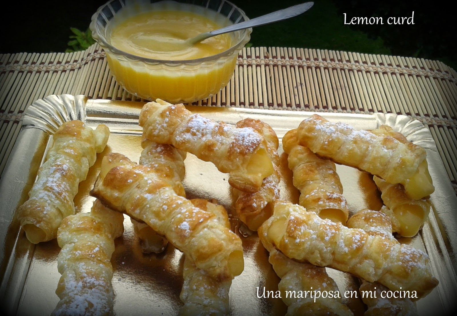 Mirad que le tenia yo ganas a esta crema, soy una apasionada del limon, y todo lo que sepa a el me encanta , pero por una cosa y otra aun no la habia echo nunca, asi que el Domingo pasado dado que el Sabado habia sido festivo no tenia nada de postre echo y pensando en uno facil y puesto que tenia una lamina de hojaldre en la nevera enseguida pense en unas cañitas, al principio pense rellenarlas con nata montada que era lo mas facil, pero como vi en la nevera dos hermosos limones que habia cojido mi marido en la finca enseguida pense en el lemon curd, asi que la nata ya quedo descartada ,y cazo y varilla en mano en unos minutos la tenia echa, es facilisima, y el sabor....madre mia que rica esta¡¡¡¡cuando la probe tuve que resistir la tentacion de volver a meter la cuchara o no quedaria nada para rellenar las cañitas, ummm y es que esta de vicio¡¡¡¡