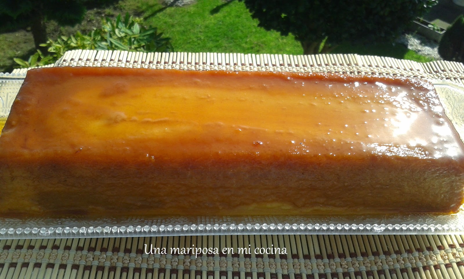 Bañamos un molde rectangular con el caramelo liquido , vertemos la mezcla dentro y cocemos en el horno al baño maria unos 40 minutos hasta que este cuajado.