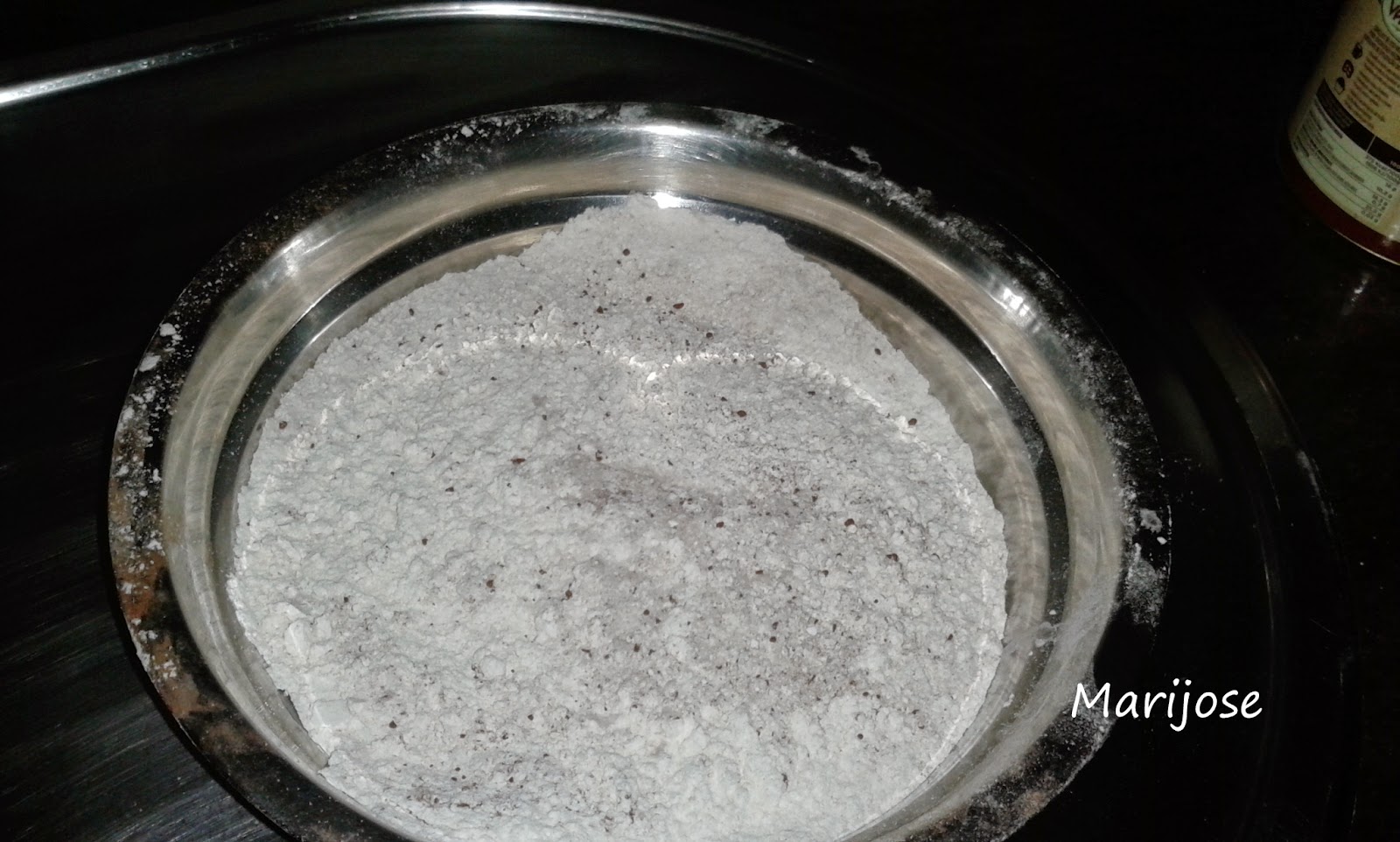 Mezclamos la harina tamizada con el azucar, el cacao, la sal y la levadura.