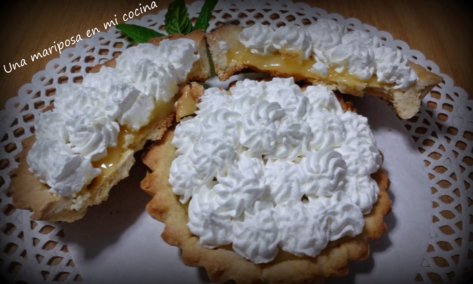 Ya frias rellenamos con la crema de limon y cubrimos con nata montada que habremos puesto en una manga pastelera con boquilla rizada.
