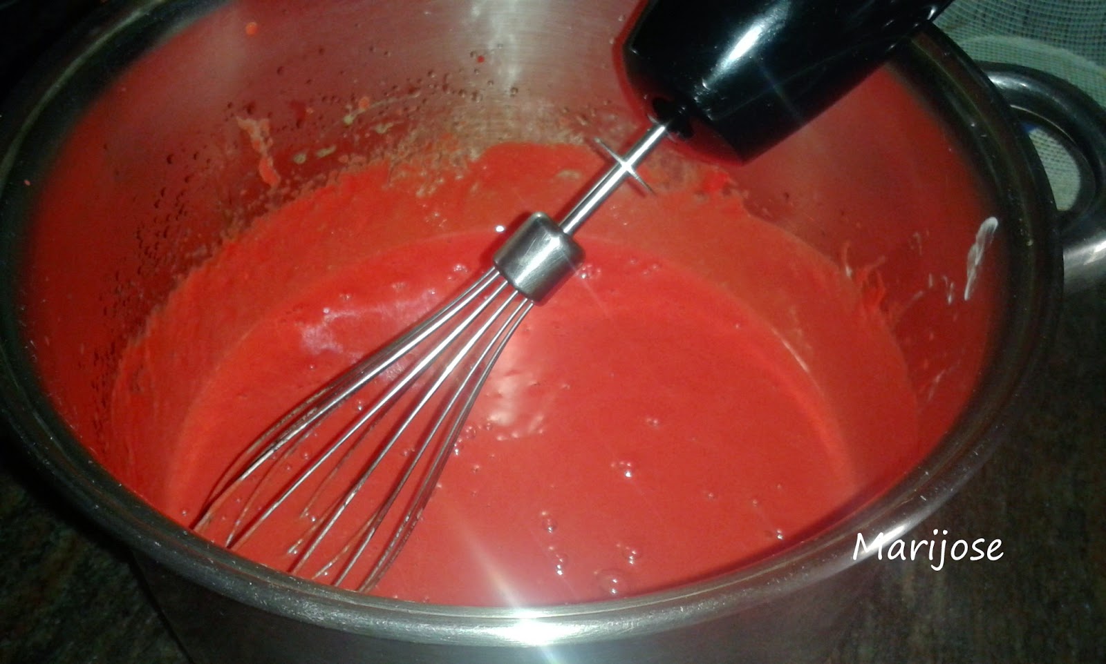 mirad que colorcito... ¿a que dan ganas de meter la cuchara?..., pues noooo a aguantarse, que es para rellenar las cañitas...