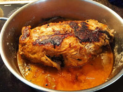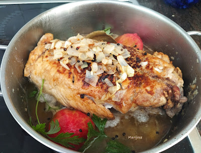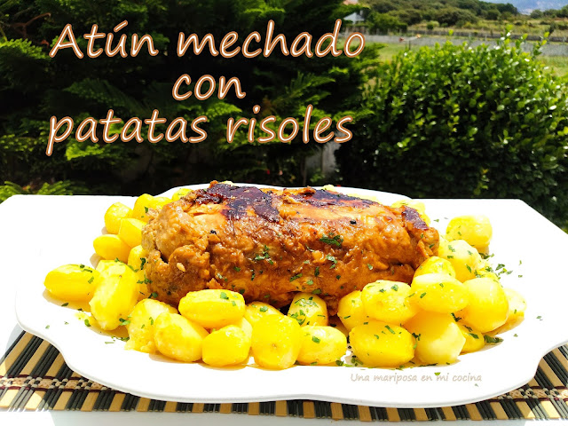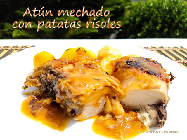 Hoy Ășltimo dia de Noviembre vamos a empezar ya con las recetas navideñas y aunque este año la Navidad serĂĄ muy diferente de las anteriores yo os traigo una receta que me trae recuerdos de mi niñez ,y a la vez recuerdos y añoranza de los que juntos disfrutabamos de ella en la mesa y ya no estan con nosotros. Esta receta es del libro de cocina de mamĂĄ ,y siempre que habia una celebraciĂłn en casa de los abuelos este atĂșn mechado formaba parte del menĂș, del atĂșn se encargaba mi tia Carmen, ella lo compraba en Vigo y luego se encargaba de preparalo mientras mi madre se encargaba del segundo plato, una carne de ternera estofada que tambien estaba de vicio , las tres hermanas, mis tias y mi madre se encargaban de todo´, sin olvidar a la abuela que siempre estaba dispuesta a ayudar en lo que fuese necesario, ella hacia de pinche pelando patatas , cebollas o lo que hiciese falta, y al abuelo y sus multiples viajes desde la sala a la cocina para supervisarlo todo y al mismo tiempo ir catando como iba la comida y sobre todo los dulces, jajaja, que feliz que estaba mi abuelito con todas hijas y nietos alrrededor,mientras los primos en el patio jugabamos y nos lo pasabamos genial,sin faltar alguna que otra disputa y pequeña pelea entre mi hermano y mi primo Javi que siempre acababan liandola, ya que si uno era cabezon el otro aun le ganaba, que tiempos aquellos tan hermosos que ya no volveran....bueno pues despues de daros un poco la chapa con mis recuerdos os dejo como se hace este atĂșn o bonito, es muy facil de hacer, una receta sencilla y con un resultado espectacular, el atun es un pescado un poco seco pero con la salsita de su coccion queda riquisimo,es mi primera propuesta para Navidad y os invito a probarlo, estoy segura os va a gustar.