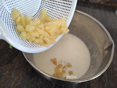 Añadimos la leche o zumo de naranja, el anĂs y el aceite frito y frio y mezclamos
