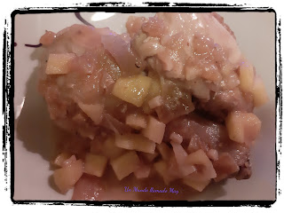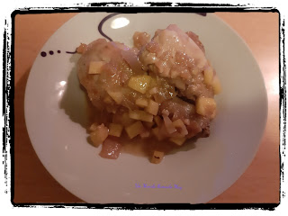 La receta la cogí del blog "De rechupete", con la variación que yo en vez de sidra normal puse la de Ladrón de manzanas frutos rojos. La verdad que fue un gran acierto, porque tenía el buen gusto del pollo junto a un sabor de frutos rojos increíble con esa manzana.