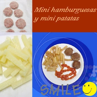 El otro dia para la cena me puse a hacer hamburguesas, pero como no habia mucho hambre, las grandes las congeles e hice unas minis, acompañadas de mini patatitas.