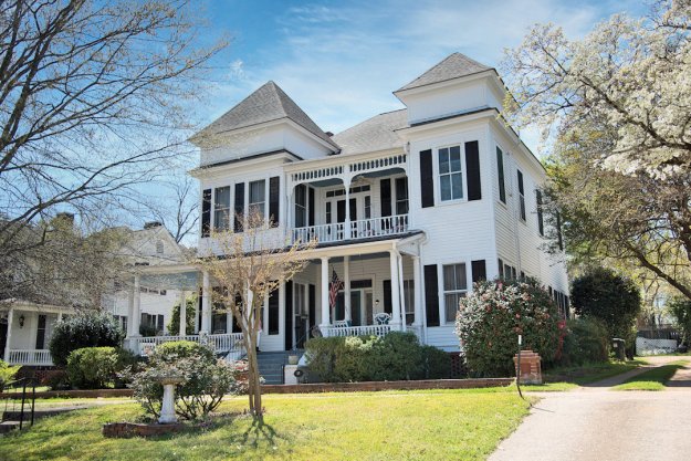 This Queen Anne townhouse was built by J. B. Pound in 1893. Identifying J. B. Pound is more difficult than dating the house. There’s a J. P. Pound buried in Memory Hill with no birth or death dates given on the headstone, but I think J. B. Pound was more likely Jerome Balaam Pound (1863-1952). Pound was a native of Dooly County who went on to become a prominent newspaper publisher and hotelier. He owned the DeSoto Hotel in Savannah, as well as two hotels on Tybee Island, the Hotel Seminole in Jacksonville, and the Hotel Patten in Chattanooga. He began his work in newspapers as a printer in Macon in 1887, and by 1888 had launched a newspaper in Chattanooga. Considering his Georgia connections, having a home in Milledgeville in 1893 doesn’t seem far-fetched, though certainly bears further research. Whatever the case, his association with the property was short-lived. He spent most of his life in Knoxville and Miami Beach.