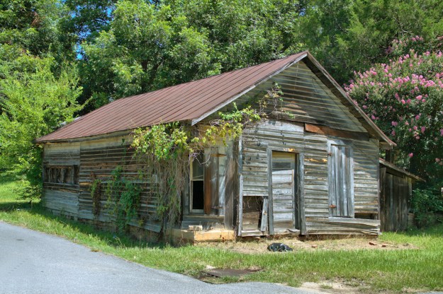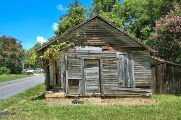 Homes of this variety can be found all over Georgia. Most feature the shed enclosure [shed room] along the back of the house, as does this example. They’re usually painted when in town and are often found unpainted in the country.