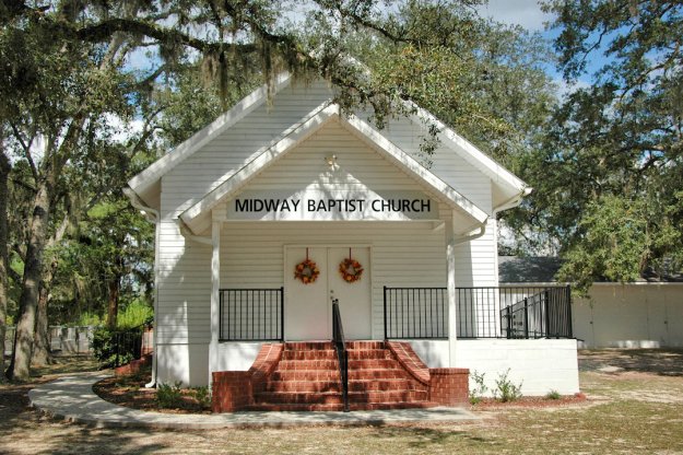 Robert A. Richardson writes: Thank you for your interest and the picture of this beautiful old one room church where I grew up in the Summer going to the Richardson family reunions and I regret this tradition has died out due to the death of so many Richardson ancestors. My great-great grandfather David Carter Richardson and my Richardson ancestors are buried in the cemetery behind the church. Before the church was organized there was a community of homes (1830-1860) across the street from the from where the church stands. This community referred to as the Gardi – branch of the Altamaha predates the American Revolution and of course the Civil War. This location for the cemetery was chosen by an original pioneer family and their name was Street and allegedly their 14 year old son died while visiting Darien and later Mr. Street died following a fishing trip to the Altamaha and at that time Mrs. Street designated the part of their property as the cemetery due to it the high ground and to avoid flooding of cemetery from the Altamaha. The original “paling” that enclosed the original cemetery still stand and I am trying to figure out some way to preserve them without removing them from the cemetery. Later the church was formed but had met unofficially for sometime initially in homes then under the oak trees. My great grandfather Aaron Riley Richardson graduated from Mercer University in 1880’s receiving his degree in divinity and became an ordained Baptist Minister. He was one of the pastors at the opening of the church. There is also another church Jones Creek Baptist which still stands and my grandfather rode horseback to preach there for over 30 years. They lived on a farm near Gardi and closer to what was known as the Pendarvis train stop. My great aunt Ester used to tell me about stories of buying things from wagons and buses that would come to sell things and how exciting that was and also would tell about horseback artists that would come from Savannah to do portraits which were partially assembled prior to the sitting. These portraits remain in my family and are treasured. Thanks again for sharing your pictures and thereby preserving the history of places that are dear to many. I have also seen your pictures of Boston where my great-great grandfather (A R Richardson) moved and preached at the Primitive Baptist church (this sect of Baptist church did not believe in missionaries at the time other Baptist churches were building their missionary programs and the group of Baptists that disagreed formed the Primitive Baptist churches in Ga. I had always wondered what the Baptist Female Academy in Boston looked liked. I thought it had burned to the ground. My great aunt Esther said that her parents always told her that the school gave its metal roof to the Confederacy during the war to make ammunitions. This is also documented a book about the History of Baptists in GA printed in the 40’s or 50’s.