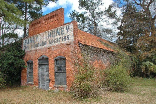 This little building was home to a ceramics studio known as the Nancy Fore Ceramics Cottage. Nancy Fore (1911-1994) was the wife of beekeeper Troy Fore, Sr. (1907-1976) who owned the Altamaha Apiaries and the iconic “Fancy Honey” building around the corner.