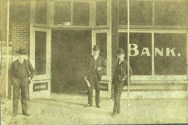 Jim Cottingham shared this historic photograph of three gentlemen outside the Merchants & Farmers Bank circa 1905. His grandfather, W. T. Cottingham, is pictured at left.