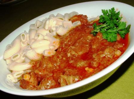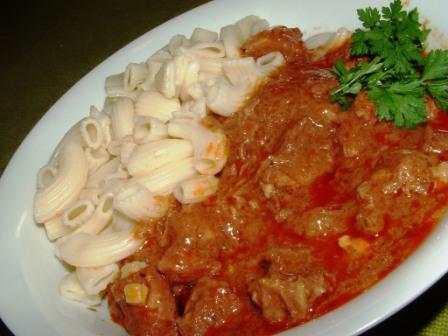 egyedül készített birkapörköltje. Eddig bográcsban, a ház ura készítette, én