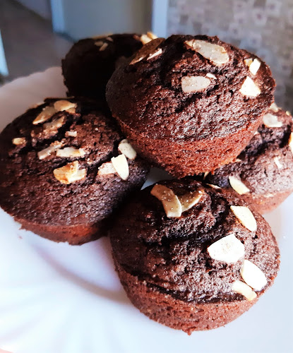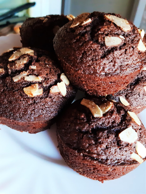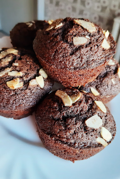 Ma korán reggel sütöttem ezt a csokis muffint, az alapreceptet kiegészítettem egy kis mandulapehellyel és kakaóporral. Mire a gyerekek felkeltek, már illatozva sorakoztak a tányéron...:))