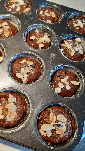 - Végül a lisztes keverékhez keverjük a tojásos krémet. Egy kanál segítségével a tepsi mélyedéseibe adagoljuk, a tetejét megszórjuk pár szem mandulával és cukrozott fahéjjal.